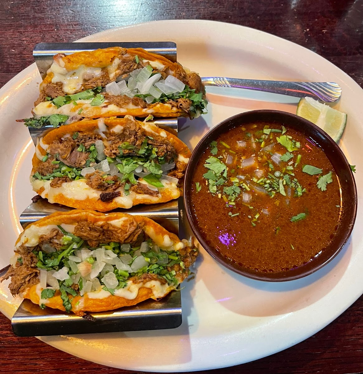 The kitchen brings forward a vibrant slice of Mexican culinary tradition—where the welcome is just as flavorful as the food. The dishes invite you to savor familiar classics in deeply satisfying ways: tender, richly seasoned tacos accompanied by savory broth for dipping; the satisfying crunch of flautas and quesadillas; and sides like elote that add a sweet-smoky note to the experience. This is food meant to be shared, with layers of texture and spice that celebrate both comfort and craft.