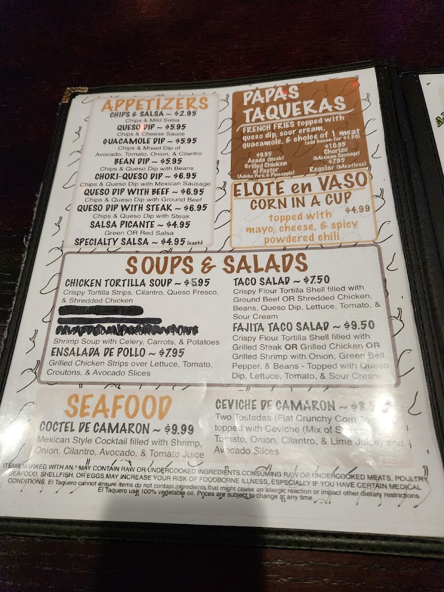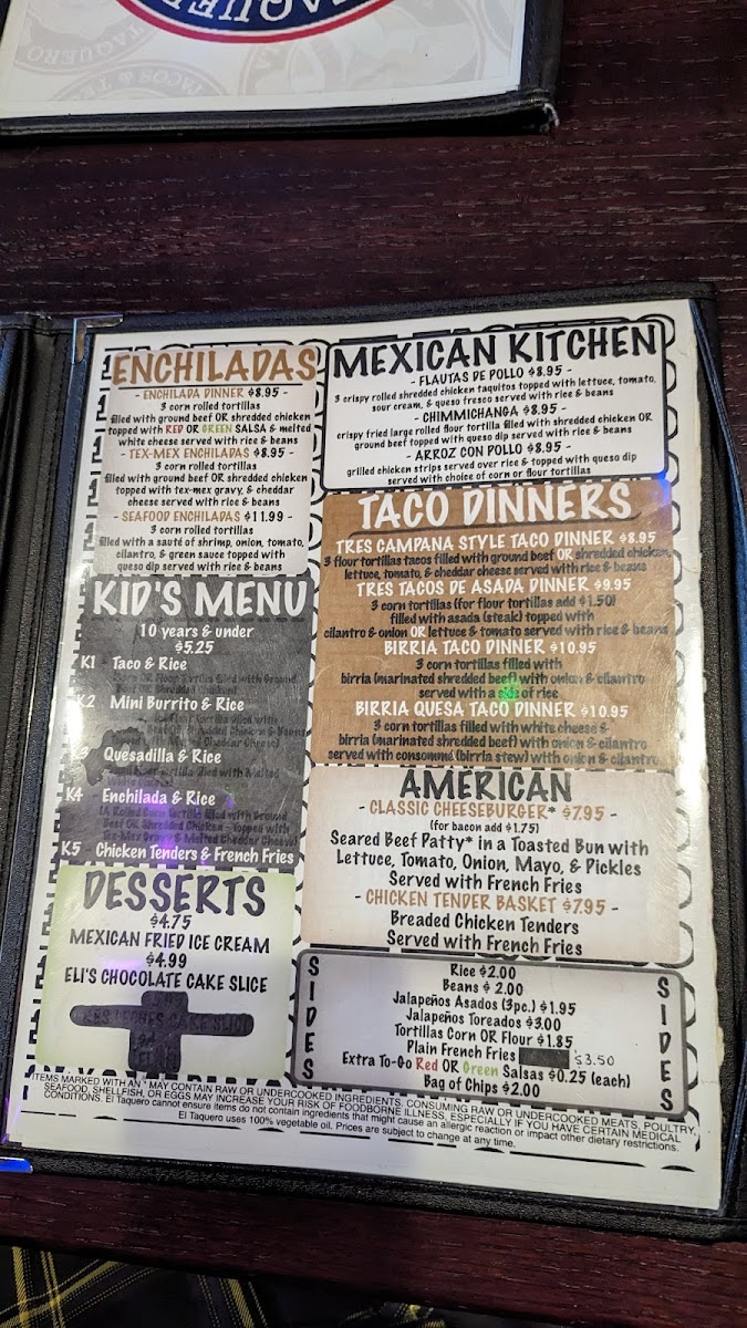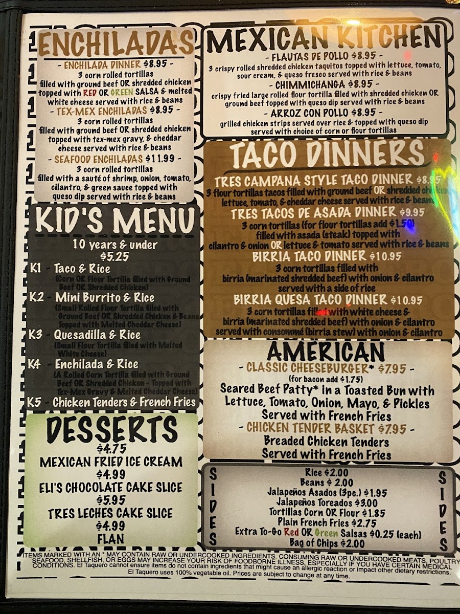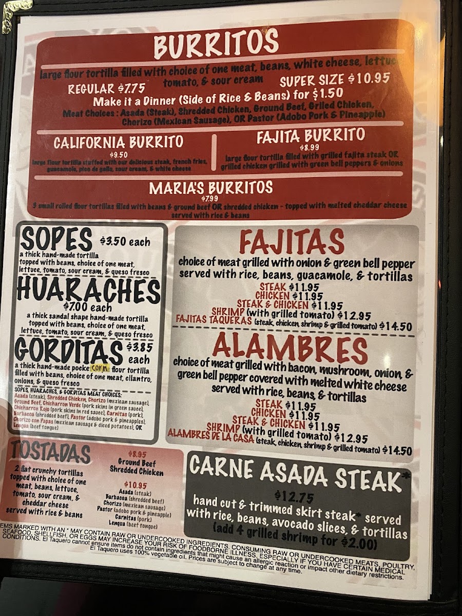 El Taquero Menu